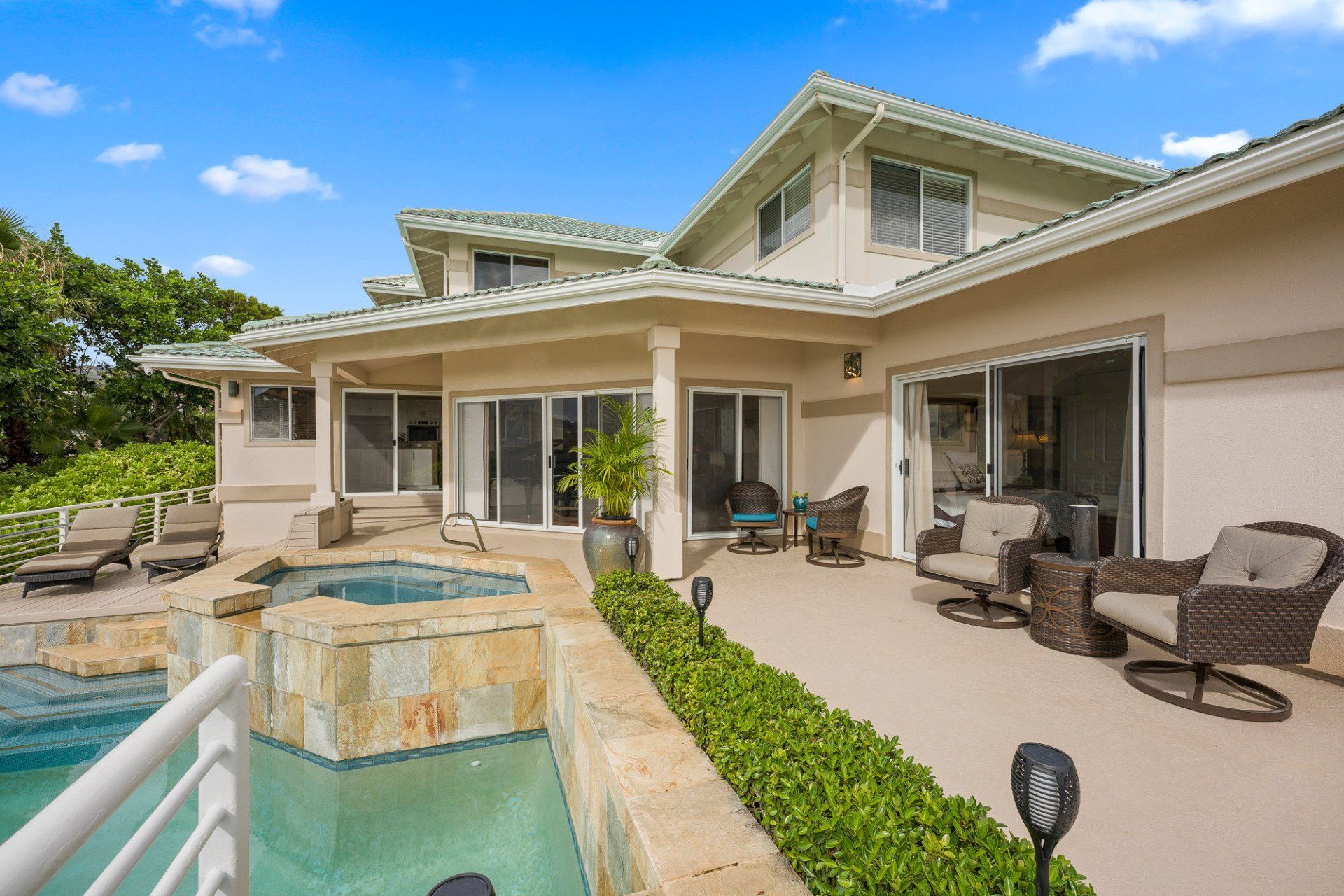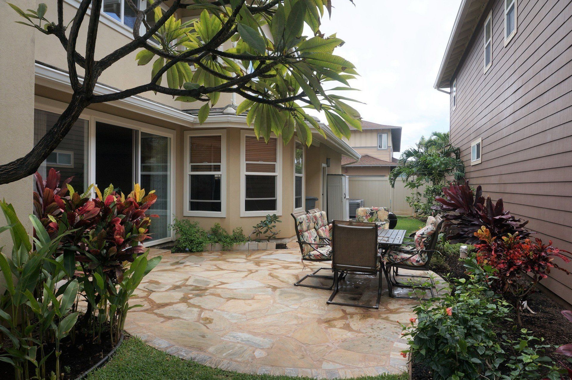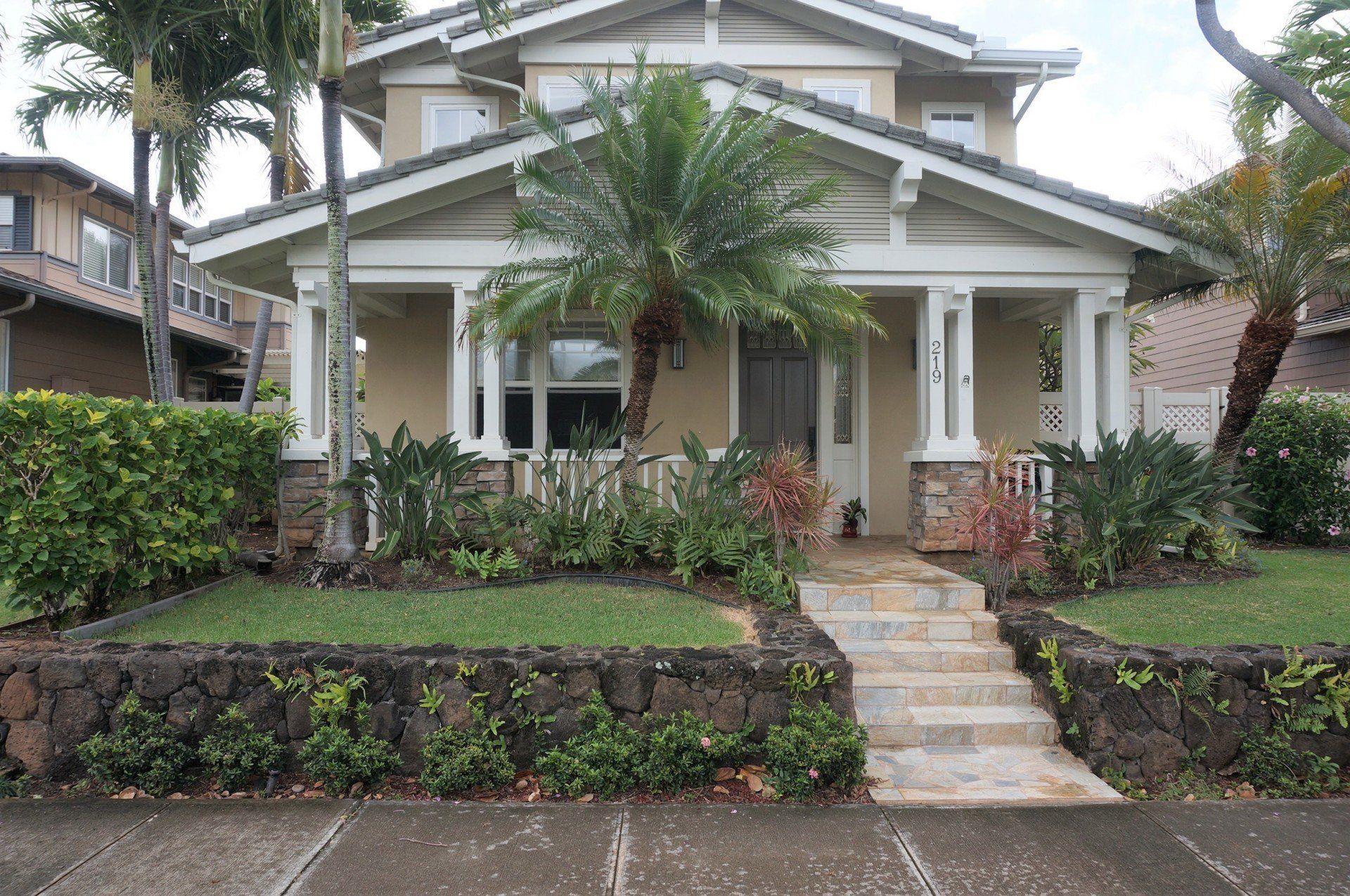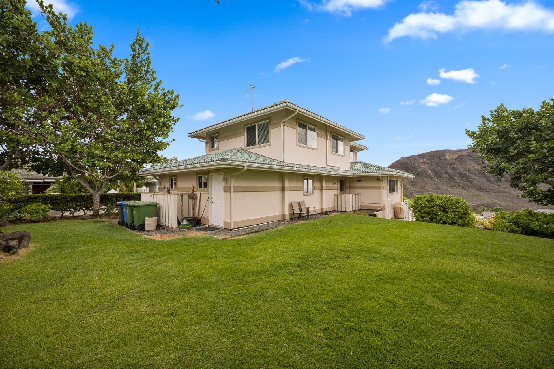 Few available! Gateway Peninsula at Hawaii Kai is a gated community with low Maint.Fees. This stunning two-story, craftsman style, detached single-family home has 3 bedrooms & 3 bathrooms. Kitchen, full bathroom and additional 4th room (den or bedroom) on the main living area – no stairs! Upstairs you’ll find a large master bedroom and bathroom, as well as a jack and jill style bathroom, creating “en suite” bedrooms for everyone. Enjoy the gourmet kitchen with a large island, wood cabinetry, and granite countertops. Extra upgrades include the brand-new dual-zone (upstairs/downstairs) central air conditioning, a beautiful and large flagstone front and back patio with tropical landscaping, rain gutters, oversized finished garage, Monier tile roof, and stucco exterior for easy maintenance.
